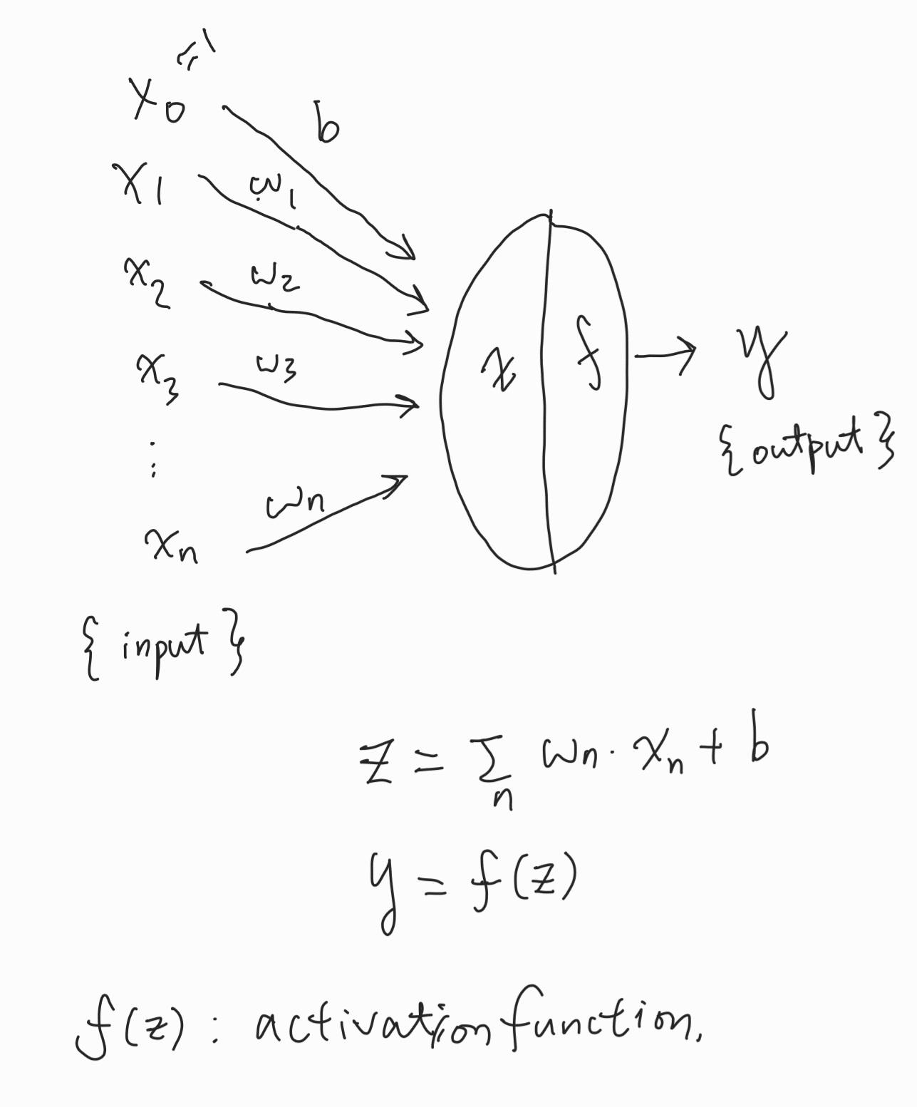 다양한 Input 이 node 로 들어와서 그 값에 따라 Output 이 정해진다.